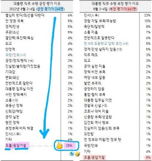 그 낮은 긍정평가 이유 1위도 결국 ‘모름·응답거절(28%)’이다.